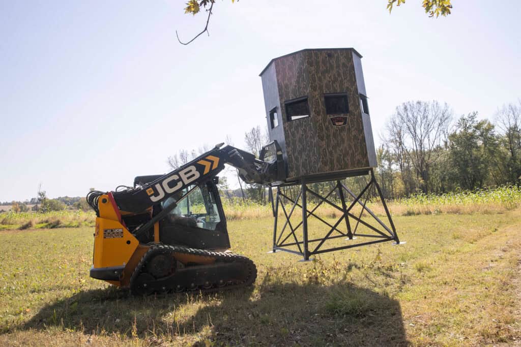 • Elevate Your Blind: If possible, consider setting up your blind on higher ground or using an elevated platform. This gives you a wider view of the surrounding area. Rutted-Up Blinds also sells towers designed specifically for our incredibly sturdy (and therefore heavy!) blinds.